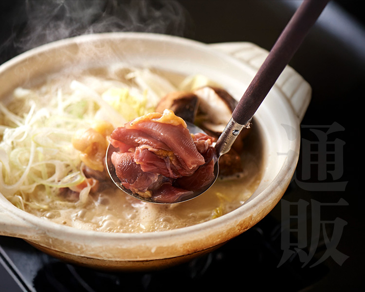 名物の一つ〝宮崎鶏の白濁水炊き鍋〟は、通販でも販売しています。鶏肉やスープ、〆の麺までセットになっており、ご自宅で簡単に店の味を再現していただける人気商品です。大切な方へのギフトにもぜひご活用ください。